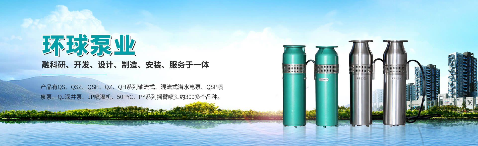 徐州環(huán)球泵業有限公司有QS、QSZ、QSH、QZ、QH系列軸流式、混流式潛水電泵,QSP噴泉泵,QJ深井泵,JP噴灌機,50PYC、PY系列搖臂噴頭約300多個品種。